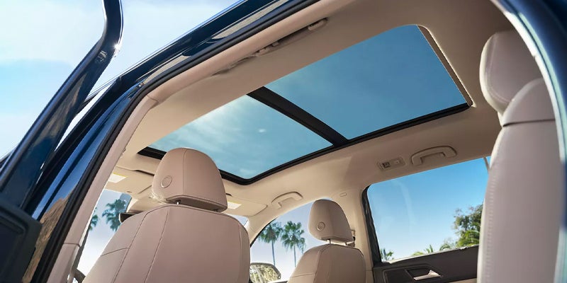 The cabin of the Volkswagen Atlas offers seating for five to seven people, depending on the configuration you select. Two-row models can seat five, while three-row configurations are available with either second-row captain's chairs or a bench seat. With the captain's chairs, the Atlas can seat six. The bench seat increases total capacity to seven. A 6.5-inch touchscreen is the default screen on the dashboard of the Atlas. It works with Apple CarPlay, Android Auto, Bluetooth, two USB ports, and a six-speaker stereo system. These technologies can help you stay connected and entertained during your drive.