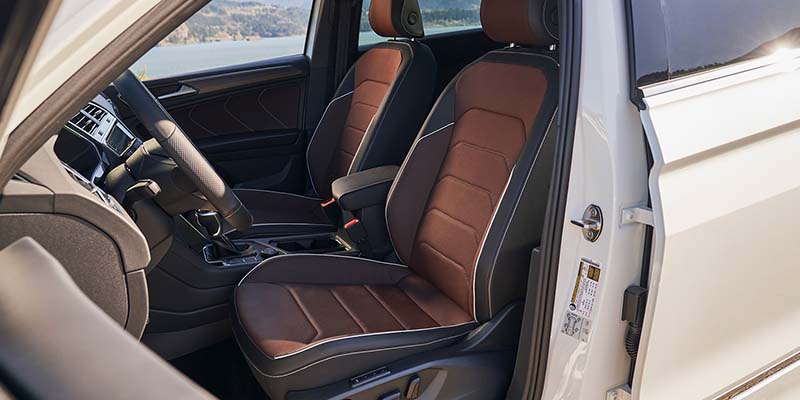The Tiguan's roomy interior design prioritizes comfort with a leather-wrapped shift knob, heated seats, ample legroom, and up to a seven-passenger seating capacity in the three-row option. Standard cabin features include a 6.5-inch infotainment touchscreen with an optional 8-inch screen, as well as Apple CarPlay, Android Auto compatibility, and Bluetooth technology.