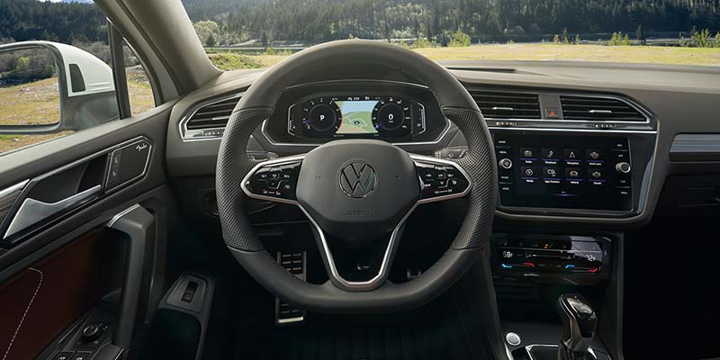The accurate steering of the 2023 Tiguan provides you with excellent weighting. When navigating a tight parking space or a sharp turn in the road, the Tiguan gives you confidence and handling control. The brakes are light and provide good stability and braking composure.