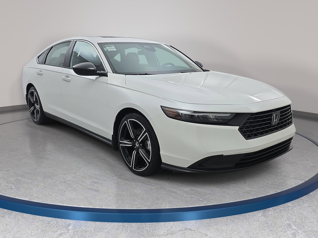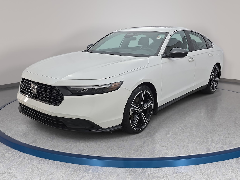 Clean CARFAX. CARFAX One-Owner. Certified. Platinum White Pearl 2023 Honda Accord Hybrid Sport FWD eCVT 2.0L 16V DOHC 4-Wheel Disc Brakes, 8 Speakers, ABS brakes, Adaptive Cruise Control: Adaptive Cruise Control (ACC) with Low-Speed Follow, Apple CarPlay/Android Auto, Auto High-beam Headlights, Automatic temperature control, Brake assist, Electronic Stability Control, Front dual zone A/C, Fully automatic headlights, Lane departure: Lane Keeping Assist System (LKAS) active, Power driver seat, Power moonroof, Radio data system, Remote keyless entry, Speed-sensing steering, Steering wheel mounted audio controls, Wheels: 19" x 8.5J Berlina Black.