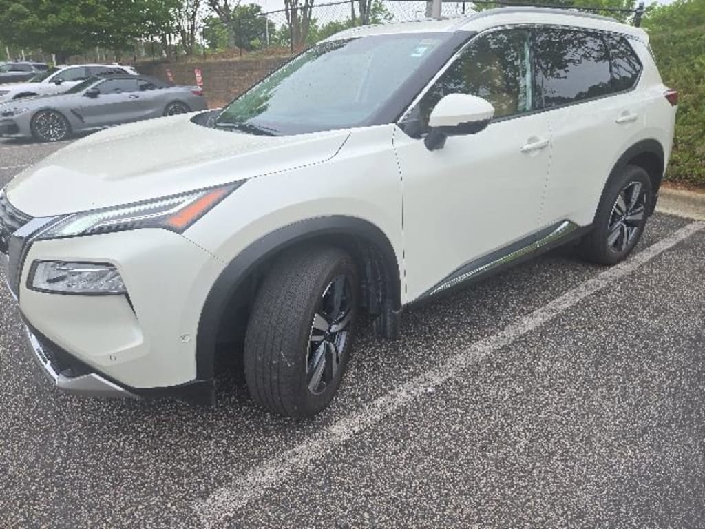 Certified. Pearl White Tricoat 2023 Nissan Rogue Platinum AWD CVT with Xtronic 1.5L I3 Turbocharged DOHC 12V LEV3-ULEV50 201hp Bought Here, Serviced Here, AWD, Navigation system: NissanConnect Navigation.