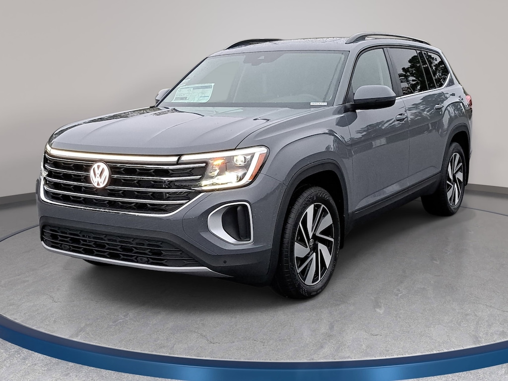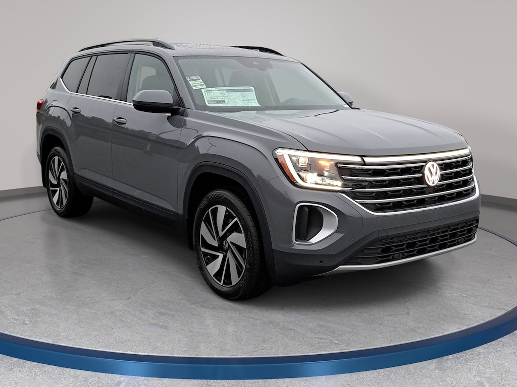 Pure Gray 2026 Volkswagen Atlas 2.0T SE w/Technology FWD 8-Speed Automatic with Tiptronic 2.0L TSI 3rd row seats: split-bench, 4-Wheel Independent Suspension, AM/FM radio: SiriusXM with 360L, Auto High-beam Headlights, Automatic temperature control, Brake assist, Electronic Stability Control, Emergency communication system: VW Car-Net Safe & Secure 5-year, Exterior Parking Camera Rear, Front dual zone A/C, Fully automatic headlights, Garage door transmitter: HomeLink, Heated & Actively Ventilated Front Bucket Seats, Heated front seats, Heated steering wheel, Heavy Duty Trunk Liner w/VW CarGo Blocks, Perforated V-Tex Leatherette Seating Surfaces, Power driver seat, Power Liftgate, Power Tilting & Sliding Panoramic Sunroof, Radio: MIB3 Composition Media, Rain sensing wipers, Rear air conditioning, Rear window wiper, Remote keyless entry, Rubber Mats Kit (2-Row), Speed-sensing steering, Split folding rear seat, Steering wheel mounted audio controls, Traction control, Ventilated front seats, VW Care, Wheels: 20" 2-Tone Machined Alloy.