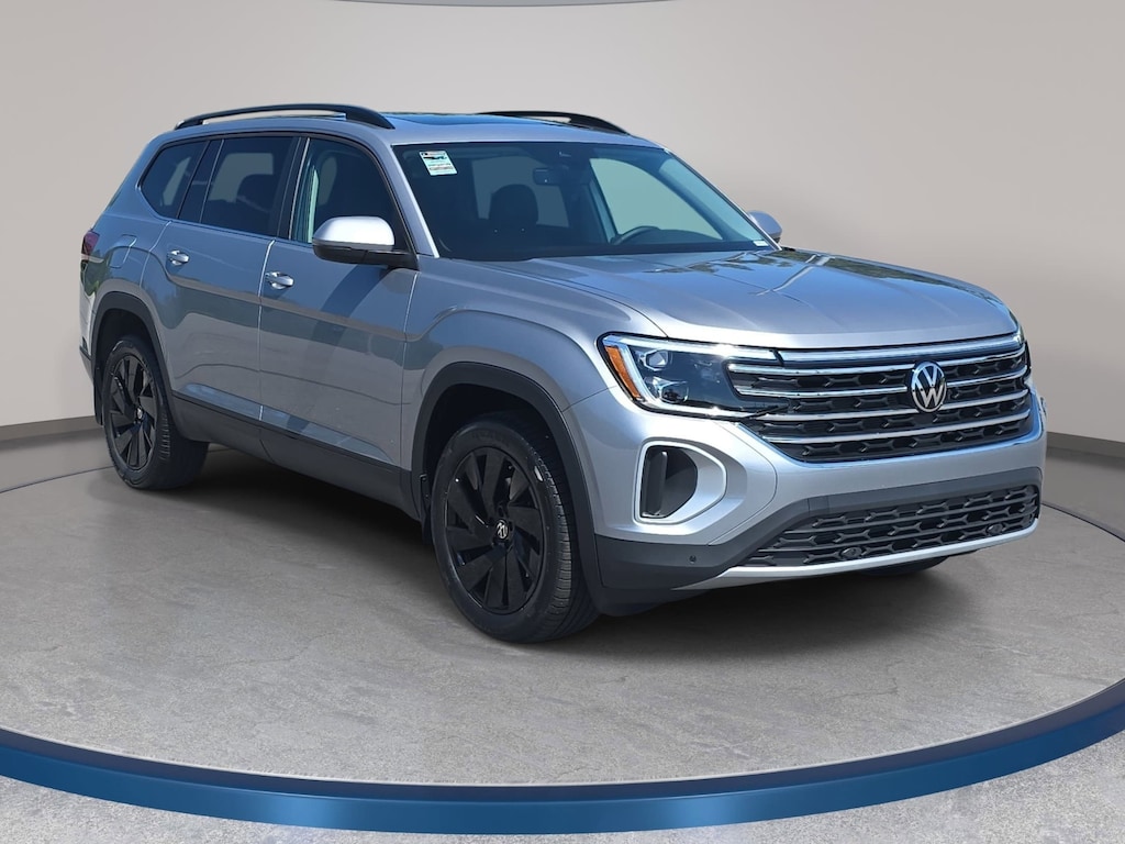 silver mist metallic 2026 Volkswagen Atlas 2.0T SE w/Technology AWD 8-Speed Automatic with Tiptronic 2.0L TSI 3rd row seats: split-bench, AM/FM radio: SiriusXM with 360L, Auto High-beam Headlights, Automatic temperature control, Black Wheel Package, Brake assist, Electronic Stability Control, Emergency communication system: VW Car-Net Safe & Secure 5-year, Exterior Parking Camera Rear, Front dual zone A/C, Front fog lights, Fully automatic headlights, Heated & Actively Ventilated Front Bucket Seats, Heated front seats, Heated steering wheel, Panoramic Sunroof Package, Perforated V-Tex Leatherette Seating Surfaces, Power driver seat, Power Liftgate, Power Tilting & Sliding Panoramic Sunroof, Radio: MIB3 Composition Media, Rain sensing wipers, Rear air conditioning, Rear window wiper, Remote keyless entry, Split folding rear seat, Steering wheel mounted audio controls, Ventilated front seats, Wheels: 20" Multi-Spoke Black Painted Alloy.