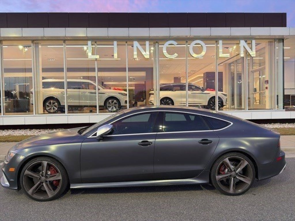 Daytona Gray Matte 2014 Audi RS 7 4.0T Prestige quattro quattro 7-Speed Automatic S tronic 4.0L V8 TFSI DOHC Adaptive Cruise Control w/Stop & Go Functionality, Audi Active Lane Assist, Audi Pre Sense Plus, Bang & Olufsen Advanced Sound System, Driver Assistance Package, Exterior Parking Camera Rear, Front & Rear Corner View Camera System, Heated Power Front Bucket Seats, High intensity discharge headlights: Xenon plus, Matte Aluminum Optic Package with "quattro" Script, Power Closing Doors, Rain sensing wipers, Red Painted Brake Calipers, Sports Exhaust w/Black Finishers, Wheels: 21" 5-Spoke Blade Design Titanium Finish.