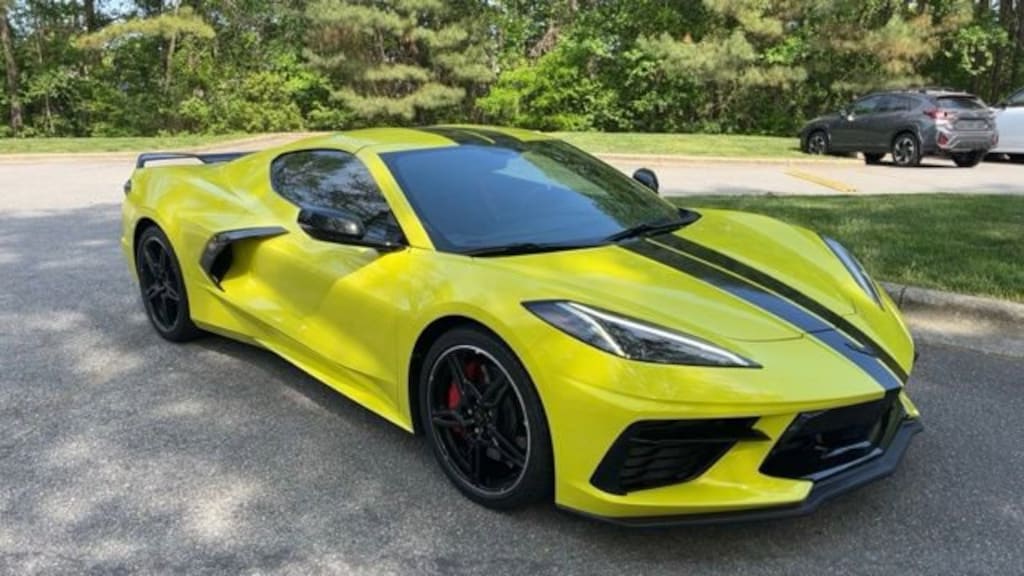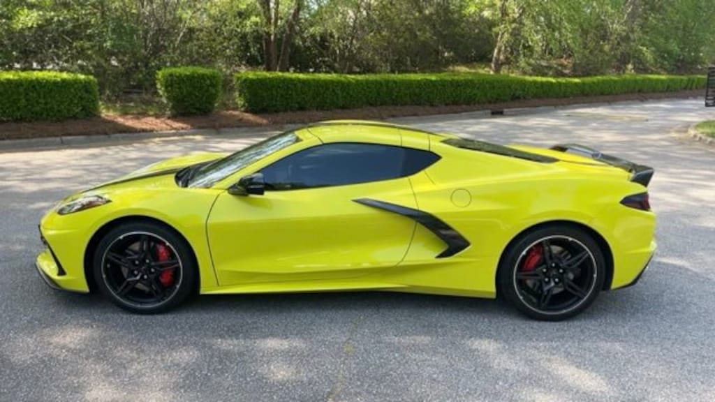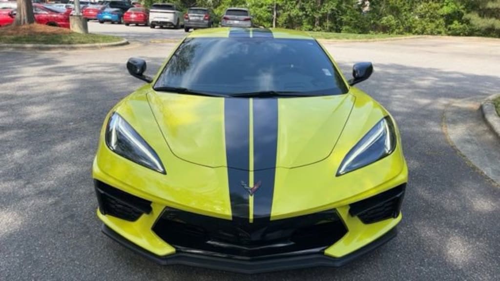 Accelerate Yellow Metallic 2020 Chevrolet Corvette Stingray 3LT RWD 8 Speed Dual Clutch 6.2L V8 2 Cargo Nets, Bright Red-Painted Calipers, Carbon Flash Metallic Dual Racing Stripe Package, Carbon Flash Metallic Painted Outside Mirrors, Carbon Flash Metallic-Painted Outside Mirrors, Custom Leather Wrapped Interior Package, Driver Power Bolster Seat Adjuster, Electrical Theft Deterrent System, Electronic Limited-Slip Differential, Engine Appearance Package, HD Front & Rear Vision Cameras, Head-Up Display, Heated & Vented Driver & Passenger Seats, Heated Steering Wheel, Heavy-Duty Cooling System, Memory Driver & Passenger Convenience Package, Passenger Power Bolster Seat Adjuster, Performance Data & Video Recorder, Performance Exhaust w/Stainless-Steel Tips, Performance Rear Axle Ratio, Power Driver Lumbar Control Seat Adjuster, Power Passenger Lumbar Control Seat Adjuster, Power-Adjustable Outside Heated Mirrors, Preferred Equipment Group 3LT, Rear Camera Mirror, Rear Cross Traffic Alert, Rear Z51 Spoiler, Side Blind Zone Alert, Sueded Microfiber-Wrapped Upper Interior Trim Pkg, Torch Red Seat Belt Color, Universal Home Remote, Vehicle Inclination Theft Deterrent Sensor, Vehicle Interior Movement Theft Deterrent Sensor, Wireless Charging for Devices, Yellow Custom Leather Stitch, Z51 Performance Brakes, Z51 Performance Package, Z51 Performance Suspension.