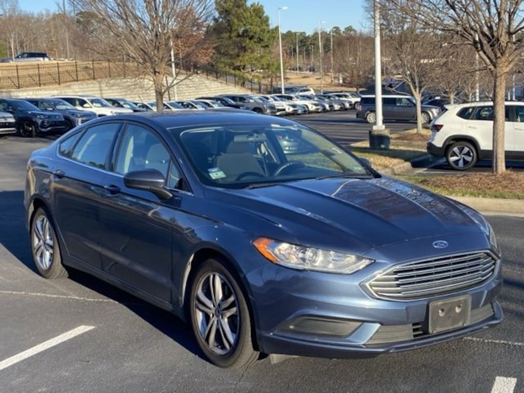 Lightning Blue 2018 Ford Fusion SE FWD 6-Speed Automatic 2.5L iVCT Non-Smoker, 6-Speed Automatic, Brake assist, Cloth Front Bucket Seats, Dual-Zone Electronic Automatic Temperature Control, Electronic Stability Control, Equipment Group 200A, Exterior Parking Camera Rear, Fusion SE Technology Package, Power driver seat, Power passenger seat, Radio: AM/FM Stereo/MP3/Single-CD, Remote keyless entry, SiriusXM Radio, Speed-Sensitive Wipers, Split folding rear seat, Steering wheel mounted audio controls, SYNC 3 Communications & Entertainment System, SYNC Communications & Entertainment System, Wheels: 17" Sparkle Silver Painted Aluminum.