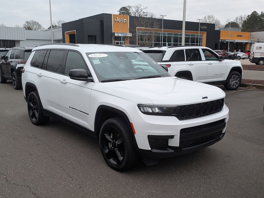 CARFAX One-Owner. Clean CARFAX. Bright White Clearcoat 2023 Jeep Grand Cherokee L Altitude 4WD 8-Speed Automatic 3.6L V6 24V VVT CARFAX CERTIFIED.. NO ACCIDENTS, ONE-OWNER, 115V Auxiliary Power Outlet, 3rd Row Charge-Only USB Ports, Altitude Appearance Package, Altitude Package, Black Headliner, Capri Leatherette/Suede Seats, Delete Laredo Badge, Gloss Black Exterior Accents, Heated Front Seats, Heated Steering Wheel, Molded In Color Black/Gloss Black Roof Rails, Power Liftgate, Quick Order Package 23B Altitude, Rain Sensitive Windshield Wipers, Remote Start System, Selectable Tire Fill Alert, Wheels: 18" x 8.0" Fully Painted Aluminum 1, Wireless Charging Pad.