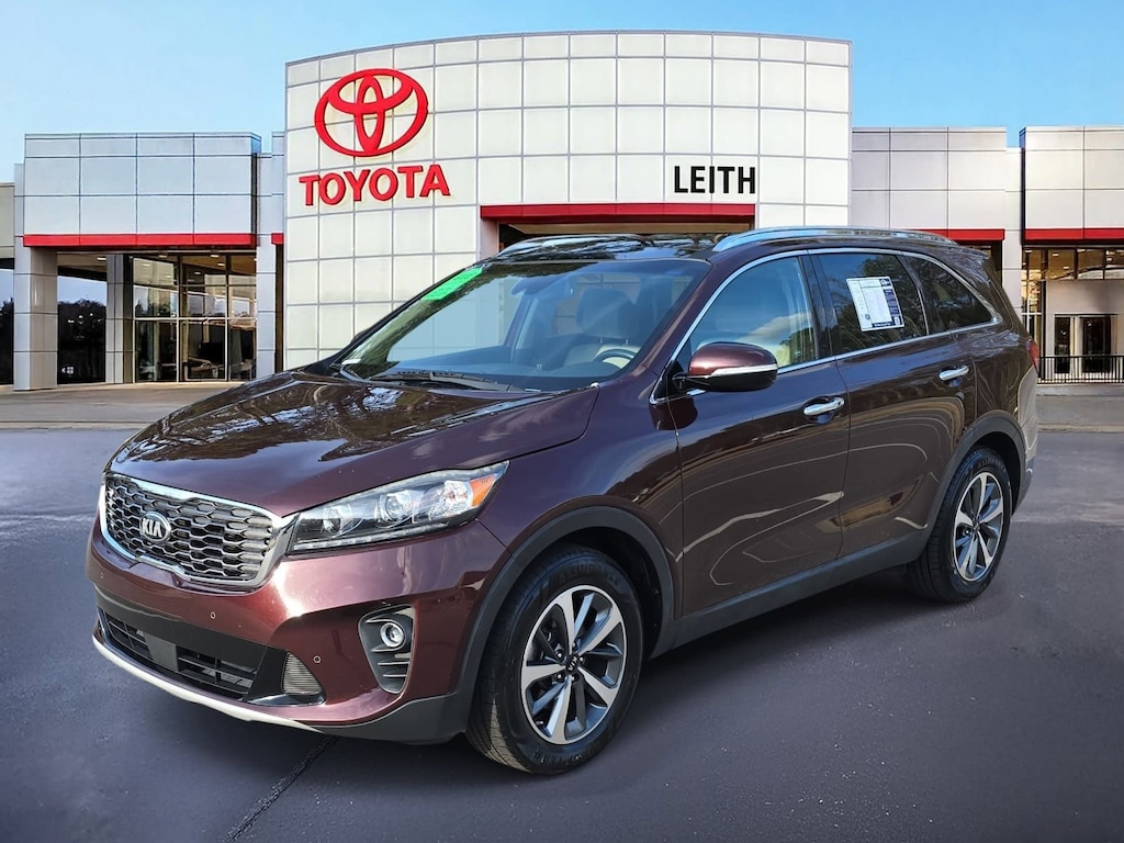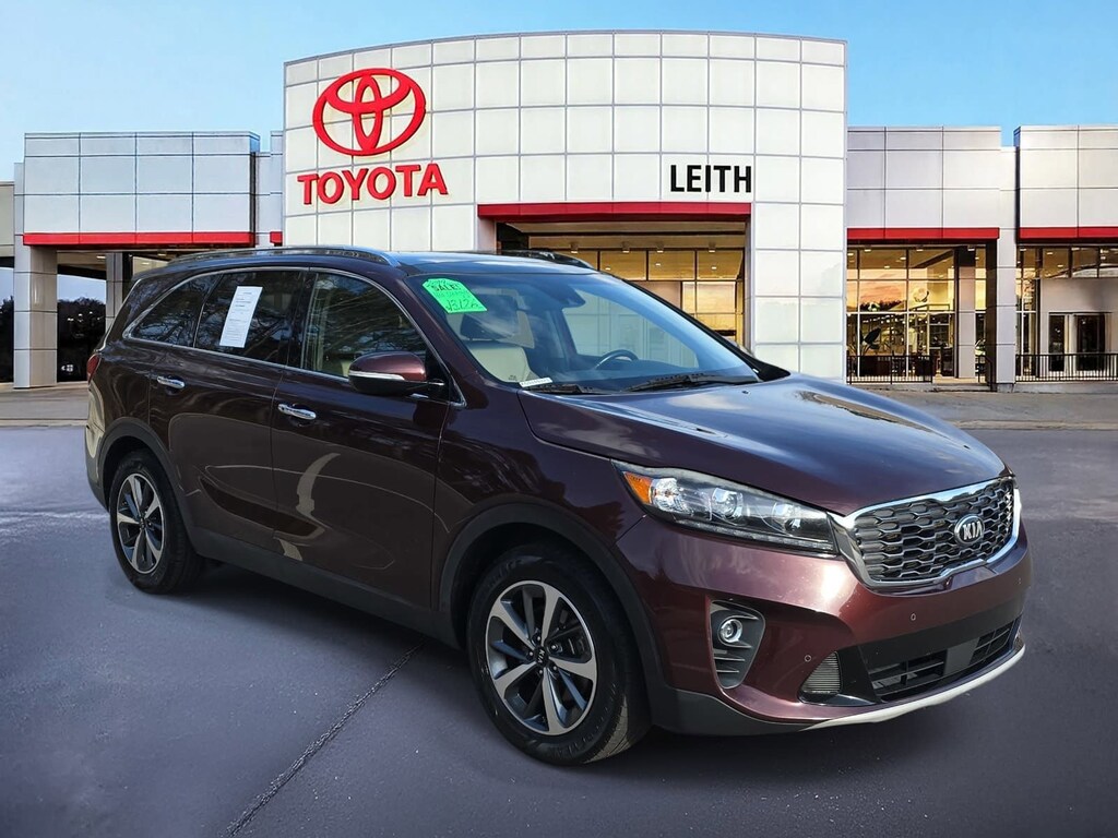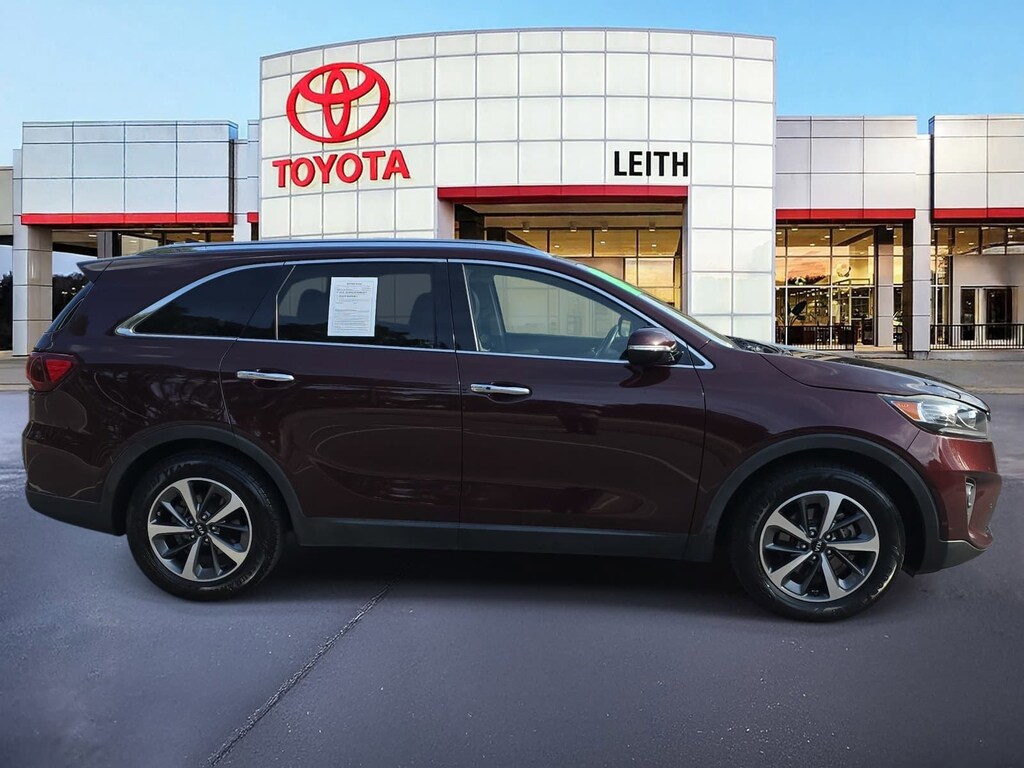 Sangria 2019 Kia Sorento EX FWD 8-Speed Automatic V6 AS IS CAR, LOCAL TRADE IN, BACK UP CAMERA, LEATHER, HEATED SEATS, PANORAMIC SUNROOF, NAVIGATION, SMART KEY W PUSH BUTTON START, APPLE CARPLAY & ANDROID AUTO, POWER LIFTGATE, MUST SEE TO APPRECIATE!, 110V Inverter, 18" x 7.5" Alloy Wheels, 2nd Row Shade Curtains, 3rd row seats: split-bench, ABS brakes, Air Conditioning, Apple CarPlay & Android Auto, Auto-dimming Rear-View mirror, Automatic temperature control, Carpeted Floor Mats (7-Passenger), Chrome Roof Rails, Delay-off headlights, Electronic Stability Control, EX Touring Package, Exterior Parking Camera Rear, Four wheel independent suspension, Front dual zone A/C, Fully automatic headlights, Garage door transmitter: HomeLink, harman/kardon Surround Sound Audio System, Heated Front Bucket Seats, Heated Steering Wheel, Leather Seat Trim, Leather steering wheel, LED Interior Lighting, Panoramic Sunroof, Park Distance Warning-Forward, Power driver seat, Power Liftgate, Power steering, Power windows, Radio: UVO eServices w/Premium Navigation, Rear window defroster, Remote keyless entry, Remote Start, Split folding rear seat, Steering wheel mounted audio controls, Telescoping steering wheel, Traction control, Turn signal indicator mirrors.