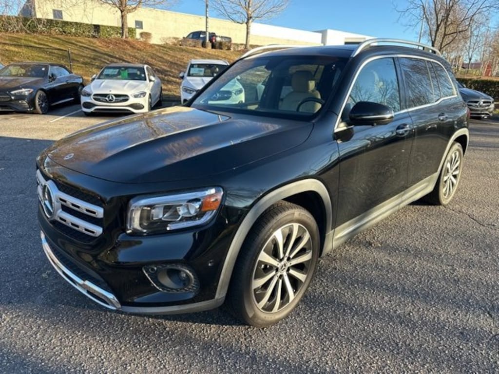 Black 2021 Mercedes-Benz GLB GLB 250 4MATIC® 2.0L I4 DI Turbocharged 10.25" Digital Instrument Cluster, 10.25" Media Display w/Touchscreen, 19" AMG® Twin 5-Spoke Wheels, 4-Way Power Lumbar Support, 4-Wheel Disc Brakes, 8 Speakers, 8-Way Power Front Seats w/Memory, ABS brakes, Air Conditioning, Alloy wheels, AM/FM radio, Android Auto®, Apple CarPlay®, Apple CarPlay®/Android Auto®, Auto-Dimming Rearview & Driver-Side Mirrors, Automatic temperature control, Axle Ratio: TBD, Black Headliner, Brake assist, Bumpers: body-color, Burmester® Surround Sound System, Child-Seat-Sensing Airbag, Driver door bin, Driver vanity mirror, Dual front impact airbags, Dual front side impact airbags, Electronic Stability Control, Emergency communication system: Mercedes-Benz Emergency Call Service, Four wheel independent suspension, Front anti-roll bar, Front Bucket Seats, Front Center Armrest, Front dual zone A/C, Front reading lights, Garage Door Opener, Hands-Free Access, HD Radio, Heated door mirrors, Heated Front Seats, Illuminated entry, KEYLESS GO®, Knee airbag, Low tire pressure warning, MB-Tex Upholstery, MBUX Voice Control, Memory seat, Occupant sensing airbag, Outside temperature display, Overhead airbag, Overhead console, Panorama Roof, Parking Assistance Package, PARKTRONIC w/Advanced Parking Assist, Passenger door bin, Passenger vanity mirror, Power door mirrors, Power driver seat, Power Folding Exterior Mirrors, Power Liftgate, Power passenger seat, Power steering, Power windows, Premium audio system: MBUX, Premium Package, Radio data system, Radio: MBUX Multimedia System, Rain sensing wipers, Rear anti-roll bar, Rear reading lights, Rear Trim, Chrome, Rear window defroster, Rear window wiper, Remote keyless entry, Roof rack: rails only, Smartphone Integration, Speed control, Speed-sensing steering, Split folding rear seat, Spoiler, Steering wheel mounted audio controls, Surround View System, Tachometer, Telescoping steering wheel, Tilt steering wheel, Traction control, Trip computer, Turn signal indicator mirrors, Variably intermittent wipers, Wireless Charging.