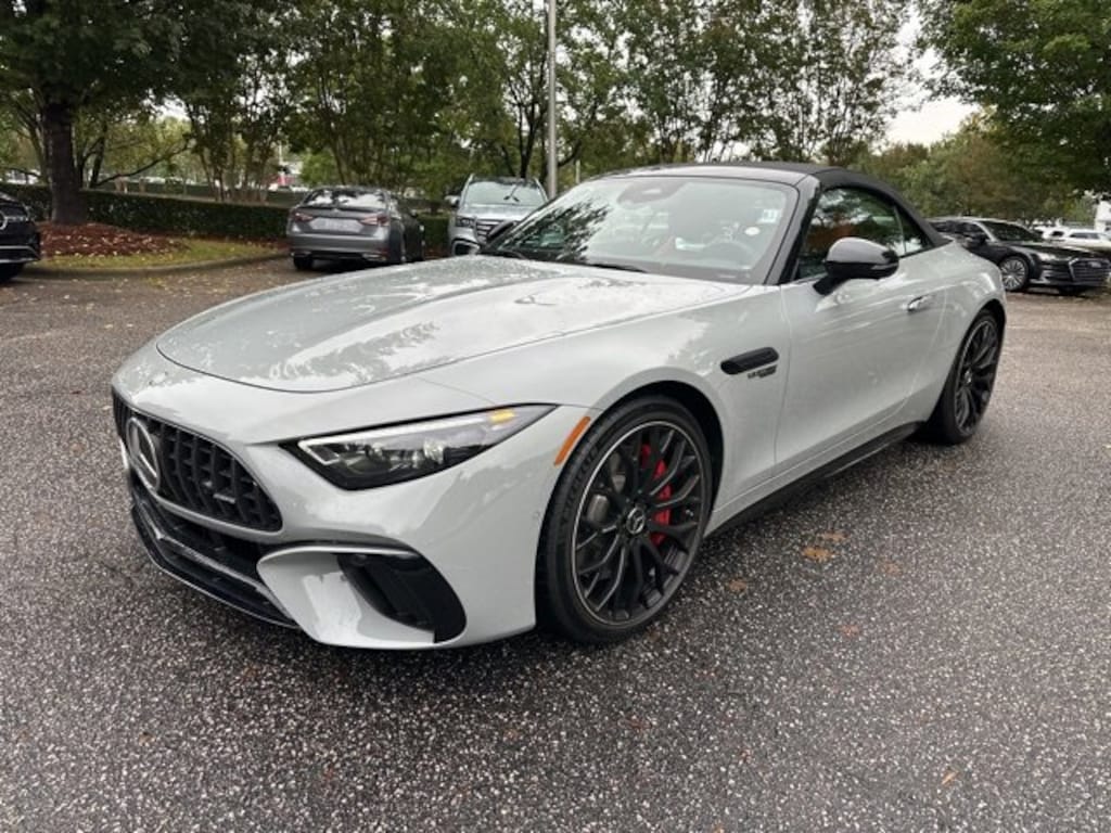 Gray 2024 Mercedes-Benz SL-Class SL 55 AMG® 4MATIC® 4.0L V8 Red Pepper/Black w/Nappa Leather Upholstery, 11 Speakers, 4-Wheel Disc Brakes, ABS brakes, Adaptive suspension, Air Conditioning, Alloy wheels, AMG® Night Package Plus, Android Auto®, Apple CarPlay®, Apple CarPlay®/Android Auto®, Auto High-beam Headlights, Auto tilt-away steering wheel, Auto-dimming door mirrors, Auto-dimming Rear-View mirror, Automatic temperature control, Black Headliner, Black SoftTop, Brake assist, Bumpers: body-color, Burmester® Surround Sound System, Child-Seat-Sensing Airbag, Convertible roof lining, Convertible roof wind blocker, Delay-off headlights, Driver door bin, Driver vanity mirror, Dual front impact airbags, Dual front side impact airbags, Electronic Stability Control, Emergency communication system, Exterior Parking Camera Rear, Four wheel independent suspension, Front anti-roll bar, Front Bucket Seats, Front Center Armrest, Front dual zone A/C, Front reading lights, Garage door transmitter: HomeLink, Glass rear window, Heated front seats, Heated steering wheel, High Performance Tires, Illuminated entry, Integrated roll-over protection, Knee airbag, Leather steering wheel, Low tire pressure warning, Memory seat, Nappa Leather Upholstery, Occupant sensing airbag, Outside temperature display, Overhead airbag, Overhead console, Panic alarm, Passenger door bin, Passenger vanity mirror, Power adjustable front head restraints, Power convertible roof, Power door mirrors, Power driver seat, Power Front Seats w/3-Position Memory, Power passenger seat, Power steering, Power windows, Radio data system, Radio: MBUX Infotainment & Navigation System, Rain sensing wipers, Rear anti-roll bar, Rear fog lights, Rear window defroster, Remote keyless entry, Security system, SiriusXM Radio, Smartphone Integration, Speed control, Speed-sensing steering, Spoiler, Sport steering wheel, Steering wheel memory, Steering wheel mounted audio controls, Tachometer, Telescoping steering wheel, Tilt steering wheel, Touring Trim Line, Traction control, Trip computer, Turn signal indicator mirrors, Variably intermittent wipers, Ventilated front seats, Wheels: 21" AMG® 10-Spoke Y-Design, Black.
