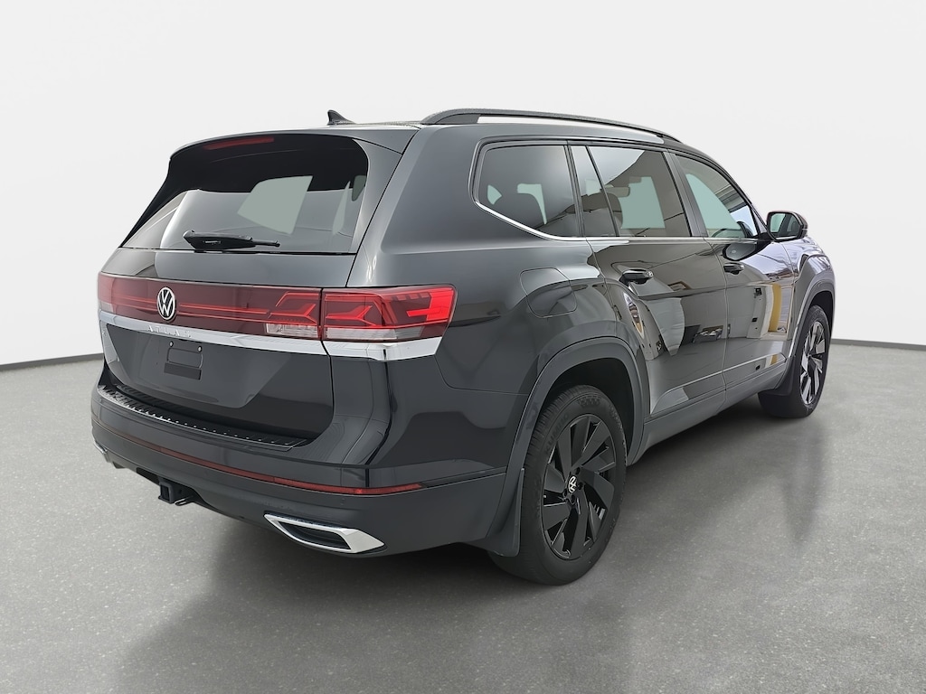 Certified. Deep Black Pearl 2025 Volkswagen Atlas 2.0T SE w/Technology FWD 8-Speed Automatic 2.0L TSI